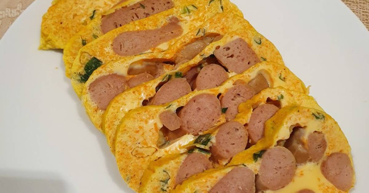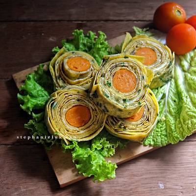 Inovasi dari jajanan jadul telur gulung jadi lebih modern dengan sosis di dalamnya.